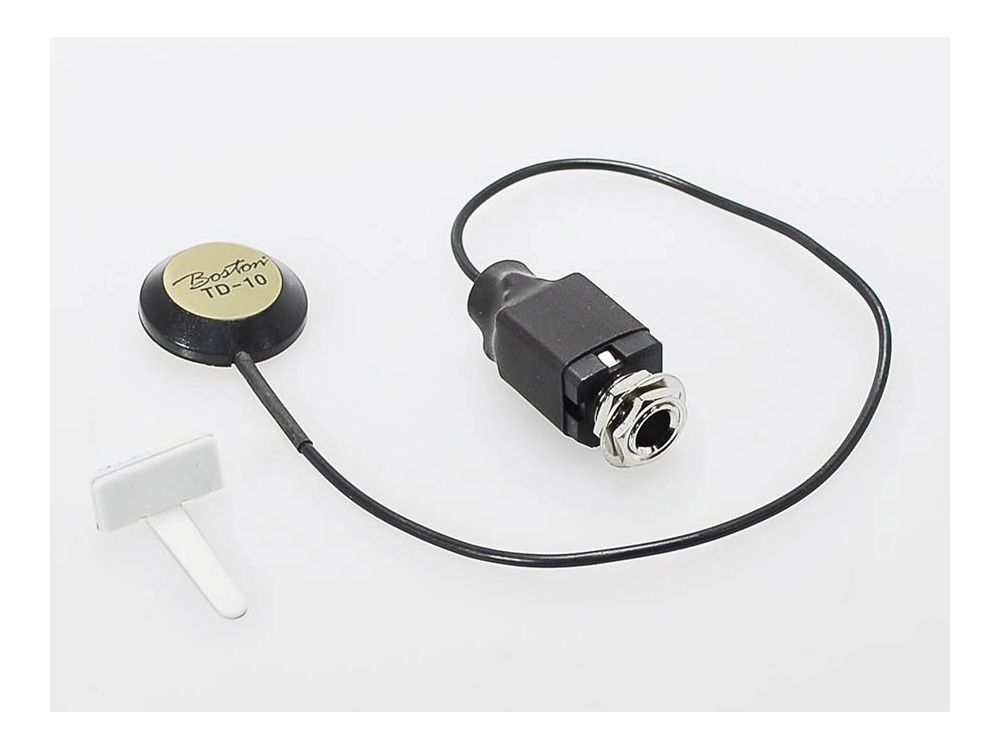 Μαγνήτης πιεζοηλεκτρικός με αυτοκόλλητη πλάτη κατάλληλος για όλες τις κιθάρες ,ο μαγνήτης έχει διάμετρο 25mm περιλαμβάνει θηλυκό jack 6,3mm και καλώδιο +- 30εκ.Μπορεί να τοποθετηθεί είτε μέσα στο σκάφος είτε πάνω στο καπάκι.